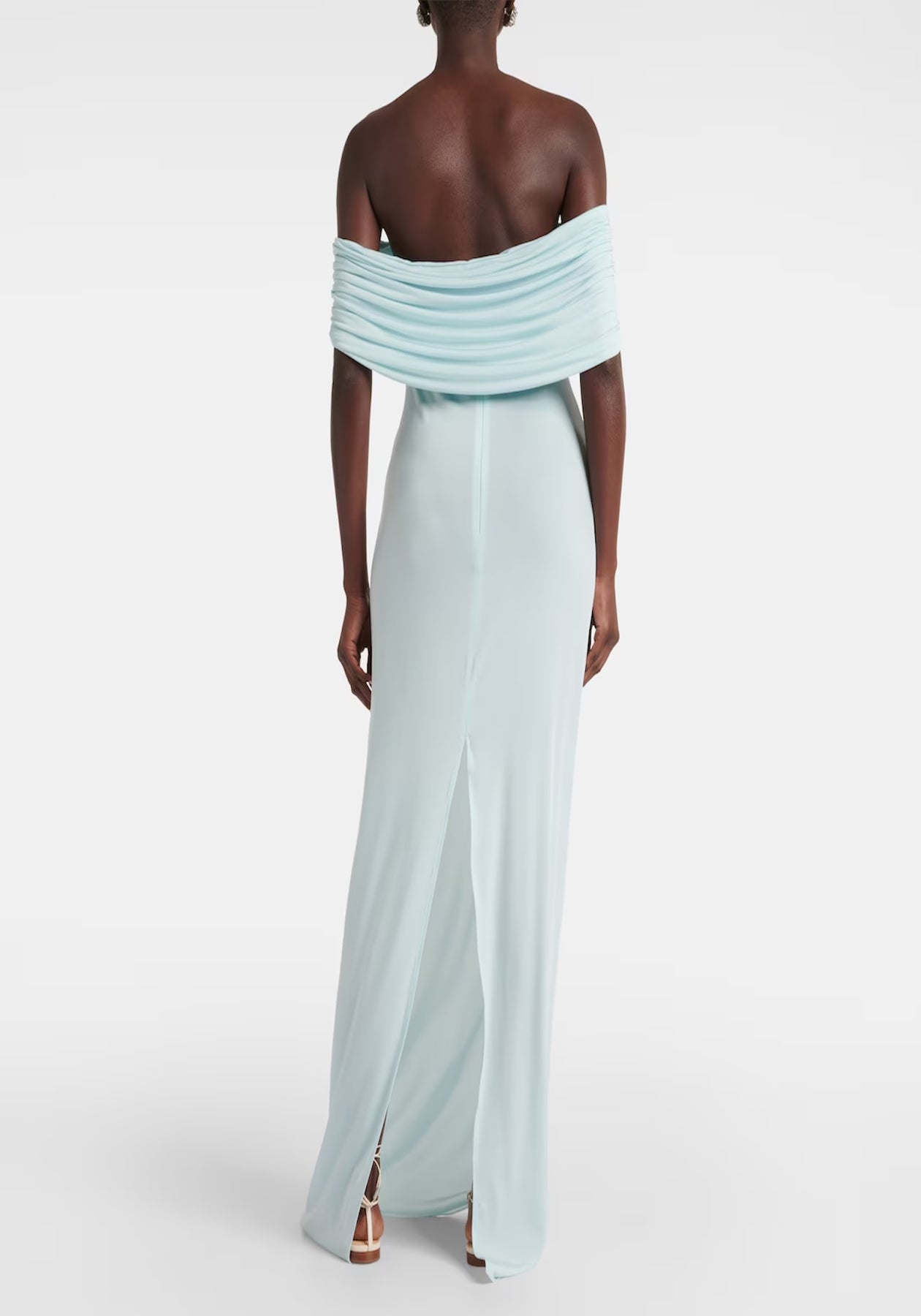 CROCHET-TRIMMED OFF-SHOULDER MAXI DRESS
